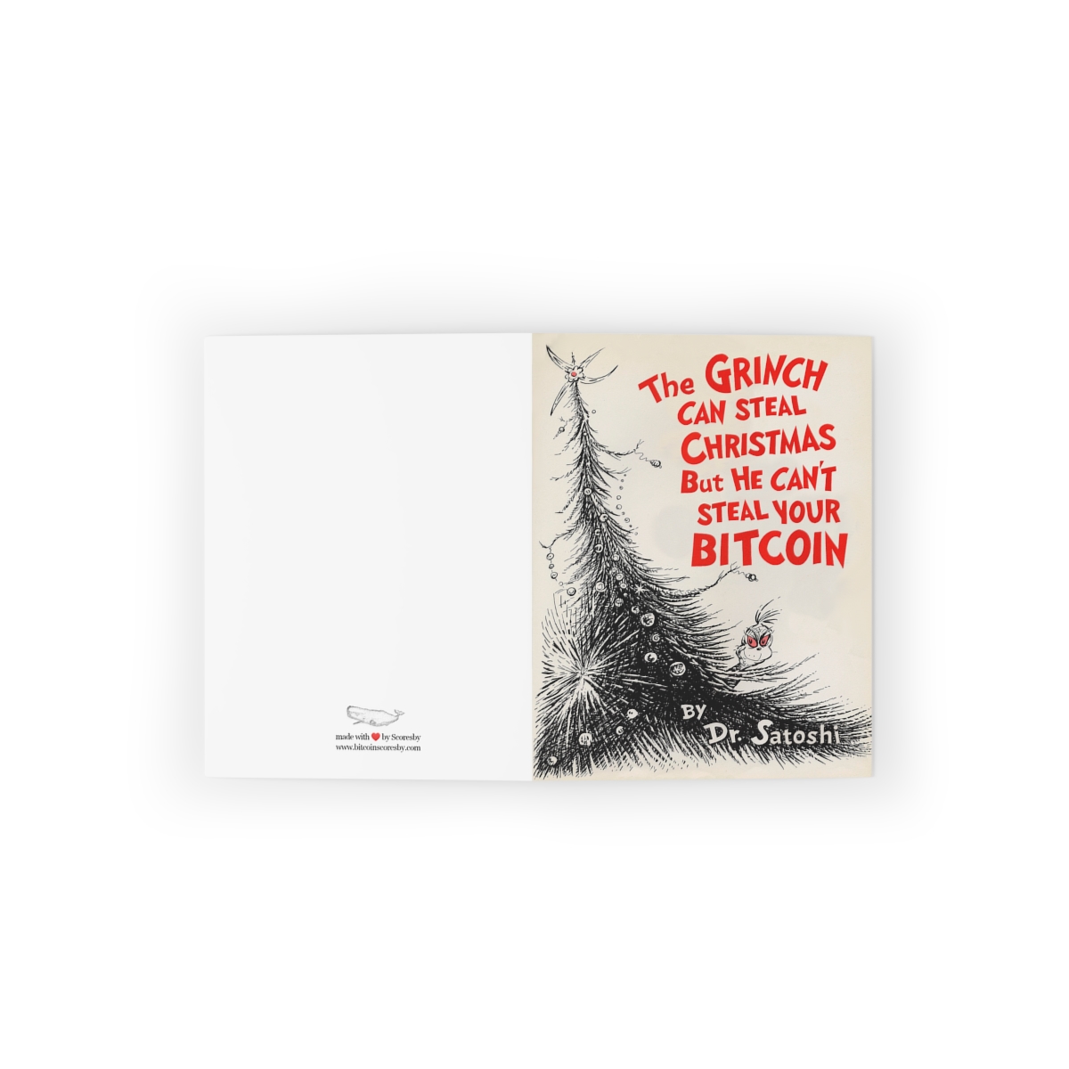 Every Who in Who-ville may have woken up to a missing Christmas, but they didn’t worry one bit because they knew that their savings were safe in Bitcoin. Printed on 80lb gloss paper. Measures 10.8 x 14 cm (4.25 x 5.5 in) White envelope included